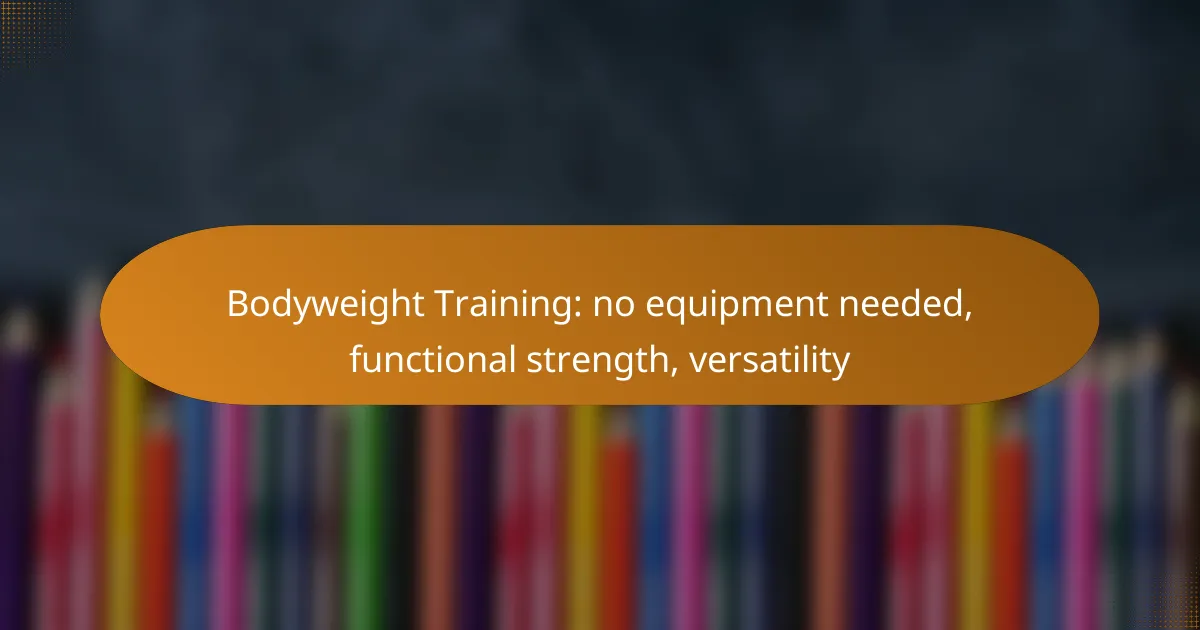 Bodyweight training leverages your own mass to create resistance, allowing for a variety of exercises that target different muscle groups. Movements such as push-ups, squats, and lunges can be performed anywhere, making it easy to incorporate into daily routines. This approach not only builds strength but also helps in developing balance and coordination.
